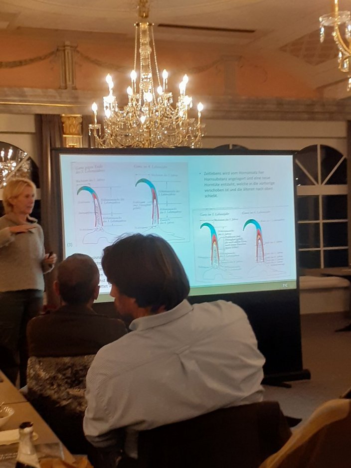Nach der Begrüßung erläuterte Frau Dr. Senn zunächst die Begriffe „autochthon“ (einheimisch, eingeboren) und „allochthon“ (fremd, auswärtig). Dadurch wurde verdeutlicht, dass das Gamswild nach seiner Ausrottung im 14. Jahrhundert erst 1935 wieder im Schwarzwald eingebürgert wurde und somit im Sinne des JWMG als heimische Wildart gilt.