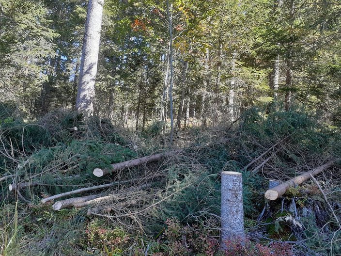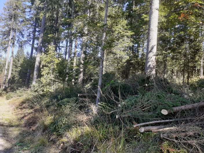 Um 09:00 Uhr traf sich die Gruppe in Grummenbach, um dann gemeinsam zu den ausgewählten Flächen auf ca. 1200 Meter ü. M. zu fahren. Nach einer kurzen Einweisungsrunde, bei der Iso Schmid auch über die regelmäßige Sichtung mehrerer Hähne und Hennen informierte, ging es ans Werk. Wieder einmal war das erklärte Tagesziel, für das Auerwild so wichtige lichte Flächen und einfach passierbare Schneisen zu schaffen.
