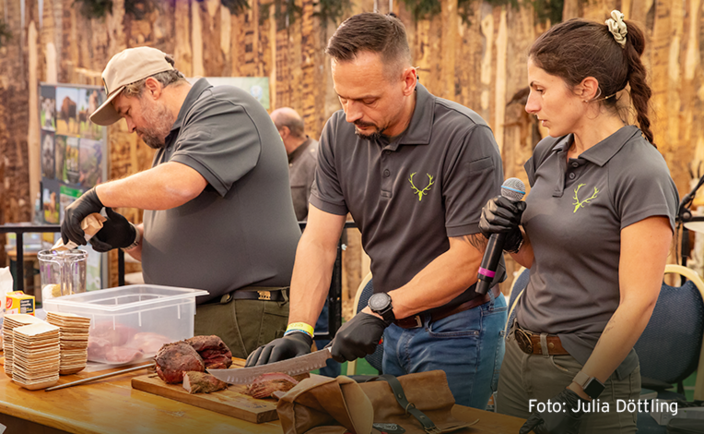Auf der Jagdbühne wurden täglich Vorträge des LJV zum Thema „Wild-Wald-Bewusstsein“ gehalten, unterstützt von Dr. Astrid Sutor vom Deutschen Jagdverband, die auch an allen drei Messetagen am LJV-Stand für Gespräche zur Verfügung stand. Die WildRebellen aus Baden-Württemberg zeigten des Weiteren auf der Bühne, wie Wild einfach und lecker zubereitet und gesmoked werden kann. Die kulinarischen Handreichungen überzeugten dabei das Publikum auf ganzer Linie.