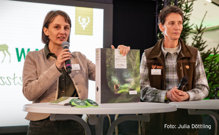 Schwerpunktthema stellte in diesem Jahr das LJV-Projekt „Wild-Wald-Bewusstsein“ dar. In hellem Grün eingetaucht war der Stand in der Verbändehalle nicht zu übersehen. Auf einem großen LED-Screen wurde dabei der neue Projektfilm präsentiert, in Abwechslung mit fantastischen Rehwildaufnahmen von Filmemacher Johannes Kübel. Miteinander statt übereinander zu reden, wie es in der neuen, pünktlich zur Messe erschienenen Projekt-Broschüre „Dialog“ des LJV als einen der Lösungsansätze heißt, wurde an den drei Messetagen aktiv gelebt.