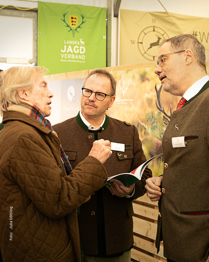 Kommen Sie mit uns ins Gespräch: An unseren neuen Kommunikationstischen erörtern wir gemeinsam die Situation in Ihrem Revier und erarbeiten Handlungs- und Lösungswege. Nutzen Sie auch die Gelegenheit, einen ersten Blick in das bald erscheinende Revierhandbuch zu werfen. Es wird Ihnen wertvolle Praxistipps und Argumente für den Umgang mit Wild und Wald liefern und Sie dabei unterstützen, sicher ins Gespräch mit Vertretern von Forst, Gemeinden oder Waldbesitzern zu gehen.