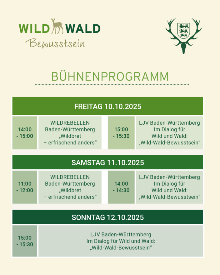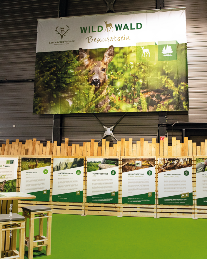 Der Landesjagdverband wird in diesem Jahr seinen Messeauftritt dem Schwerpunktthema „Wild-Wald-Bewusstsein“ widmen. Mit dem Projekt möchten wir eine Grundlage für den gemeinsamen Dialog legen und bei allen Beteiligten das Bewusstsein für die Notwendigkeit des Waldumbaus im Klimawandel und die Rolle der Jagd stärken. Denn diese liegt nicht alleine in der Erfüllung wirtschaftlicher Ziele, sondern im Ausgleich aller Interessen: für Mensch, Wild und Natur. Diese Herausforderung können wir nur gemeinsam bewältigen. Wie das gelingen kann, erfahren Sie bei uns am Stand.