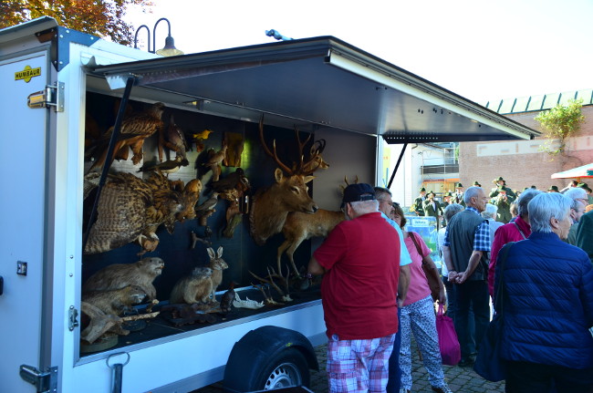Der freundlicherweise von der KJV Freiburg zur Verfügung gestellte Anhänger Lernort Natur war den ganzen Tag sehr stark frequentiert. Auch die vom Hegering Hinterzarten angebotenen Wildbratwürste fanden reißenden Absatz.