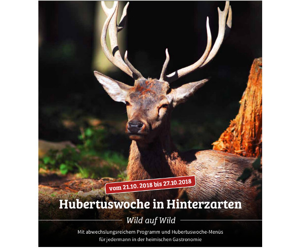 Auch in diesem Jahr findet wieder die Hubertuswoche in Hinterzarten statt, veranstaltet von der Hochschwarzwald Touristik GmbH. Wiederum wird einiges von uns Jägern und Förstern mit gestaltet. Die Jagdhornbläsergruppe Hochschwarzwald bläst eine Messe im Gottesdienst am 21.10. und beim Vortrag über die Gämsen von Dr. Gerrit Müller am 22.10.2018 spielen die Jagdhornbläser St. Märgen. Anbei der Flyer der HTG.
