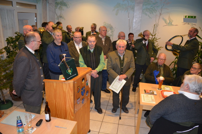 Die Jagdhornbläsergruppe Hochschwarzwald unterstützte die Versammlung mit musikalischer Begleitung bei Begrüßung, Totengedenken und Ehrungen.