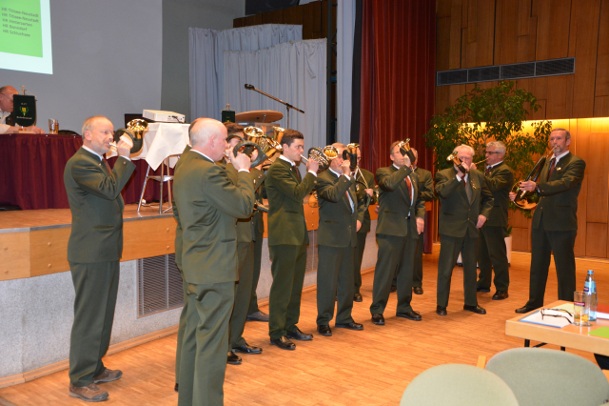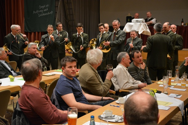 Die Jagdhornbläser unterhielten noch mit einigen Stücken, während die Teilnehmer noch manche Diskussion zu den gehörten Themen führten.