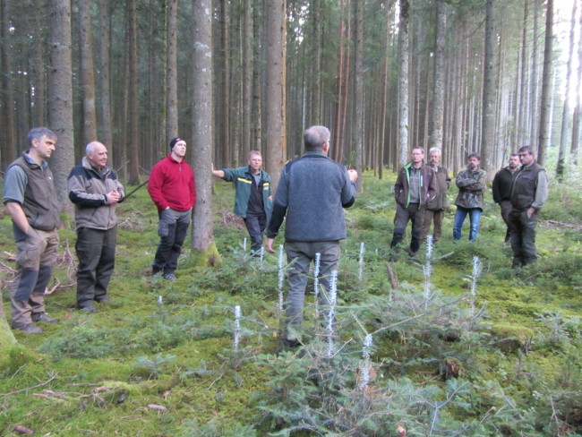 Die Jäger können durch ihre Tätigkeit einen wertvollen Beitrag zur nachhaltigen Bewirtschaftung des Waldes leisten. Neben dem Schutz der verbissgefährdeten Jungpflanzen sei auch das schwerpunktmäßige Bejagen von Aufforstungsflächen sehr dienlich. Allerdings sei die Bejagung immer schwieriger geworden. Die Störungen beispielsweise durch Jogger, Biker und Pilzsammler habe das Wild zu Nachaktivität getrieben. Deswegen ist der Anblick von Wild immer seltener möglich. Das Jagen werde immer zeitaufwendiger und es wäre bei schneearmen Wintern immer schwieriger, die festgelegten Abschussplänen einzuhalten, so die Sorge vieler an der Exkursion beteiligten Jägern.