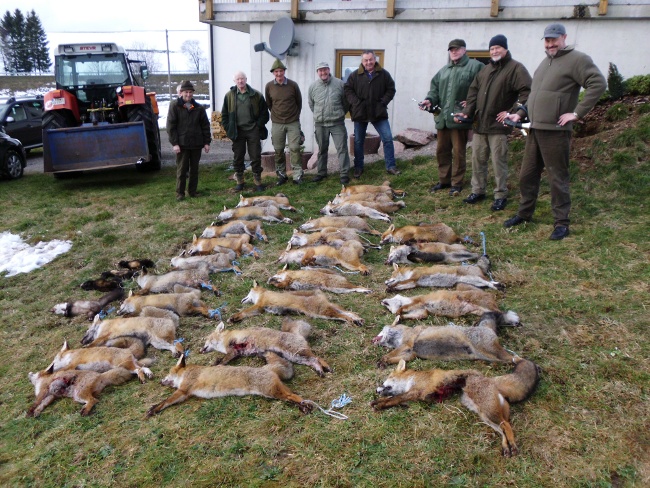Die Beteiligung der Jäger an der Fuchswoche im Hegering Hinterzarten steigt. Mit einer Strecke von 28 Füchsen, 3 Iltissen und 1 Steinmarder wurden die bisherigen Ergebnisse übertroffen. Bester Raubwildjäger war Andreas Rombach aus Beitnau mit 14 Füchsen, 3 Iltissen.