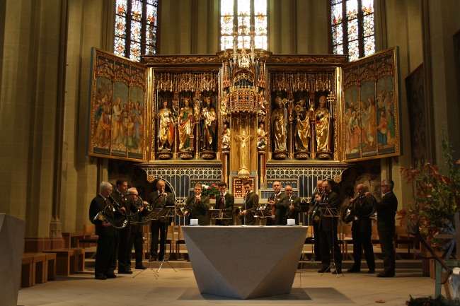 Die diesjährige Hubertusmesse im Neustädter St. Jakobus-Münster stellte für die Bläsergruppe Hochschwarzwald ein Jubiläum dar. Vor vierzig Jahren hatte die Gruppe just an gleicher Stelle ihre erste Hubertusmesse geblasen. Der damalige Initiator und langjährige Bläsergruppenleiter Hans Beck ist immer noch mit dabei. In seiner Predigt gelang es Stadtpfarrer Hermann, einen Bogen von St. Martin über die arme Witwe aus dem Evangelium zum hl. Hubertus zu schlagen. Musikalische Grundlage der Liturgie ist nach wie vor die auf französischen Ursprüngen beruhende Hubertusmesse von Reinhold Stief. Der musikalische Leiter der Gruppe, Thomas Ketterer, ist jedoch bestrebt, Stücke anderer Komponisten wie Chalmel, Maderthaner und Schantl einzubauen, um dadurch für eine Bereicherung zu sorgen. Der Applaus der Gottesdienstbesucher im vollbesetzten Neustädter Münster, unter ihnen der stellvertretende Landesjägermeister Wolf Riedl, zeigte, dass diese Neuausrichtung bei den Zuhörern bestens ankommt. Ein herzliches Dankeschön dem Hegering Titisee-Neustadt, der in der Person von Johann Dinger für den Schmuck des Münster mit Waldgrün und Hirschgeweih gesorgt hat.
